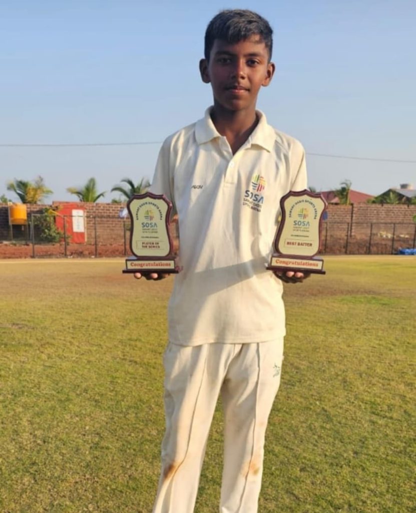 Master Devang Milind Gurav from Shreeman Gangadhar Govind Patwardhan English medium School Ratnagiri, studying in std VIII is selected in the Maharashtra State under 14 cricket team.